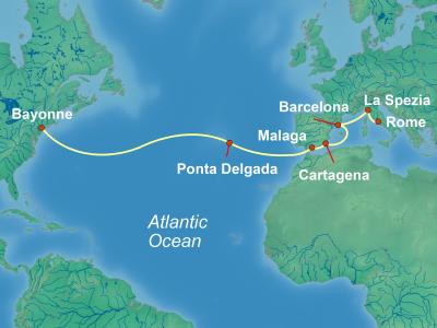 Første møte med Europa er solrike Málaga på Costa del Sol – inngangsporten til Andalusias kultur, tapas og historiske severdigheter. Videre venter Alicante, kjent for sine lange strender og sjarmerende gamleby, før reisen fortsetter til elegante Palma de Mallorca med sin imponerende katedral og middelhavsatmosfære.