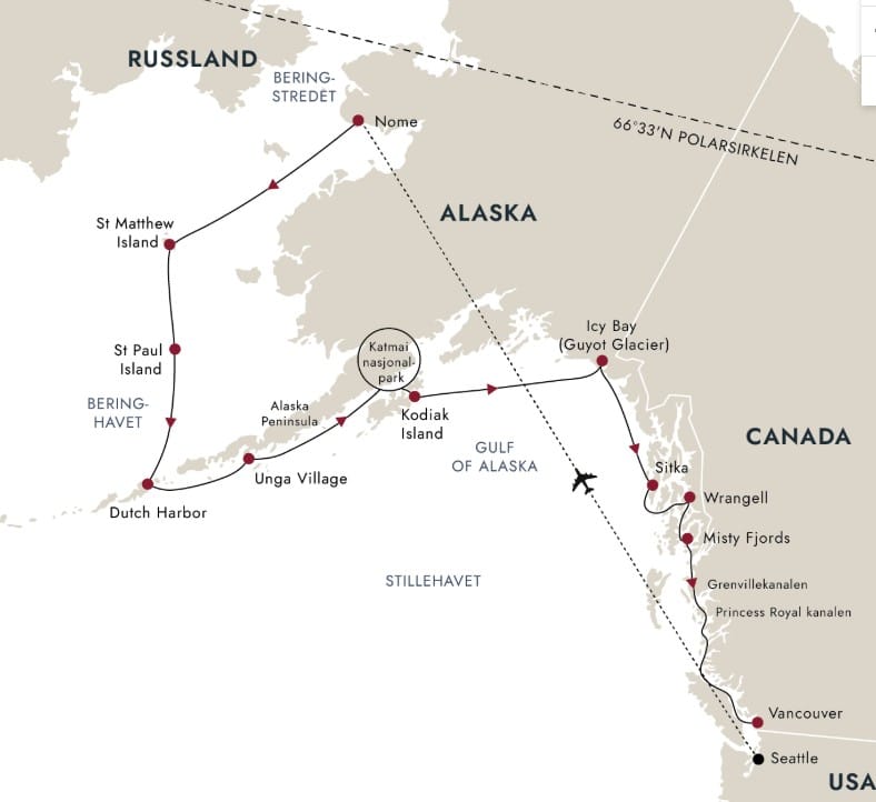 Ekspedisjon Suite, øvre dekk med balkong :22–28 m², privat balkong, dobbel-/twin‑seng og sofabed, minibar, TV, kaffemaskin, badekåper