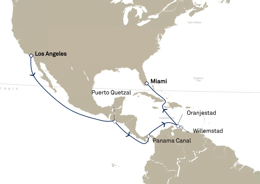 Cruiset starter i stjernenes by – Los Angeles, hvor Hollywood-glamour, solfylte strender og kulturelle opplevelser danner rammen for avreise. Herfra setter du kursen sørover langs stillehavskysten mot Puerto Quetzal i Guatemala – en port til høylandsbyer som Antigua, kjent for sin koloniale arkitektur og rik mayakultur.