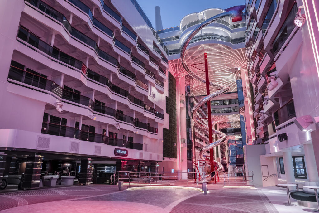 Dette er et skip hvor det er umulig å kjede seg: Flere bassengområder og infinity pools med havutsikt Vannpark og familievennlige soner Sportsarena med alt fra basketball til virtuelle spill Løpebane og treningssenter med panoramautsikt Shoppingområde med internasjonale merkevarer Barne- og ungdomsklubber i verdensklasse