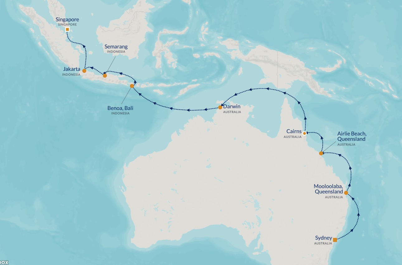 På dette unike 19‑netters cruiset med Azamara Pursuit seiler du fra det pulserende Sydney i Australia til den moderne metropolen Singapore, med stopp på noen av de mest fascinerende destinasjonene i Australia og Sørøst‑Asia.