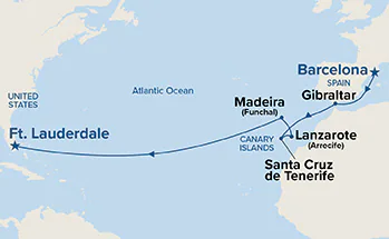 Cruiset avsluttes i Fort Lauderdale, porten til Florida, etter en reise som gir deg følelsen av å ha krysset et hav i ordets rette forstand. Dette er en ideell reise for deg som ønsker færre havner, mer nytelse om bord og en behagelig overgang fra europeisk høst til amerikansk varme.