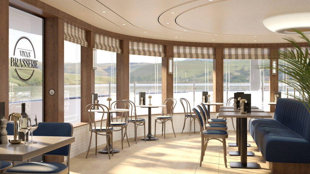 Double Cabin – standardlugar med to enkeltsenger (kan settes sammen), bord, stoler, vindu eller fransk balkong (avhengig av dekk). Passer bra for par eller to reisende som ønsker enkel komfort. bildene er ikke klare ennå